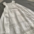 細かなアイレット手刺繍レースがとても豪華なロングベビードレス。飾って楽しんでいただいても、実用いただいても、ドールやテディベアに着せていただいても。写真のような、レースの接続部分の若干のほつれ、小さな錆汚れがありますが、雰囲気を損なわない程度です。 ※洗濯済みです。