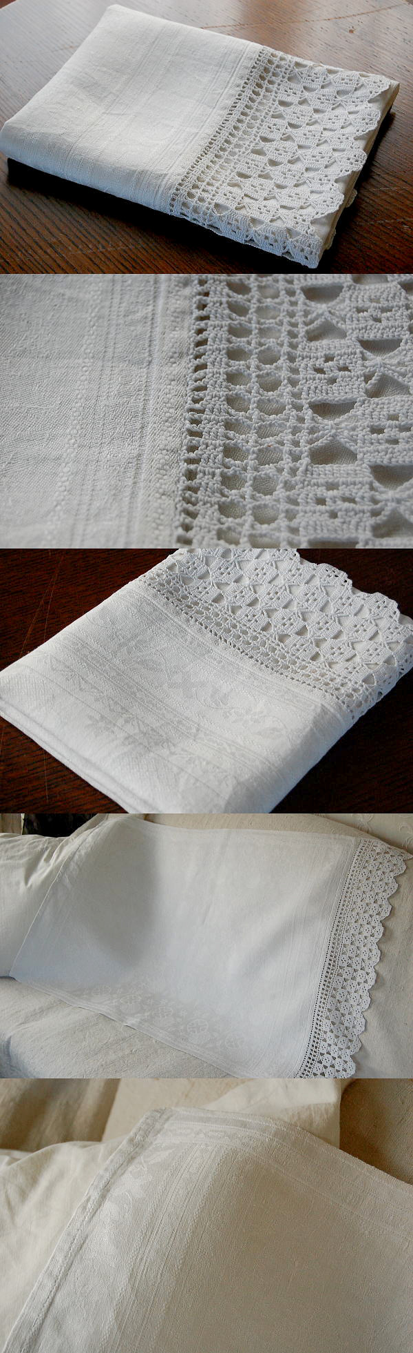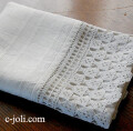 しっかりとした厚みの麻生地に、コットンクロッシェレースが素敵なアンティークリネンタオルです♪ ※軽く、漂白・洗濯済みです。