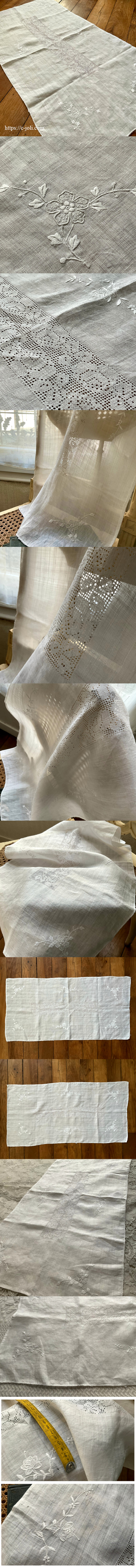薄く張りのある上質な麻ローン地に、丁寧に施された手刺繍やドロンワークが素敵なアンティークリネンテーブルマット。写真のように生地が薄くなっている箇所がありますが、雰囲気を損なわない程度です。 ※現地ディーラーにより洗濯済みです。