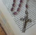 お祈りに使うロザリオですが、ネックレスとしてお使いいただける長さです。十字架部分はシルバーめっき。