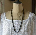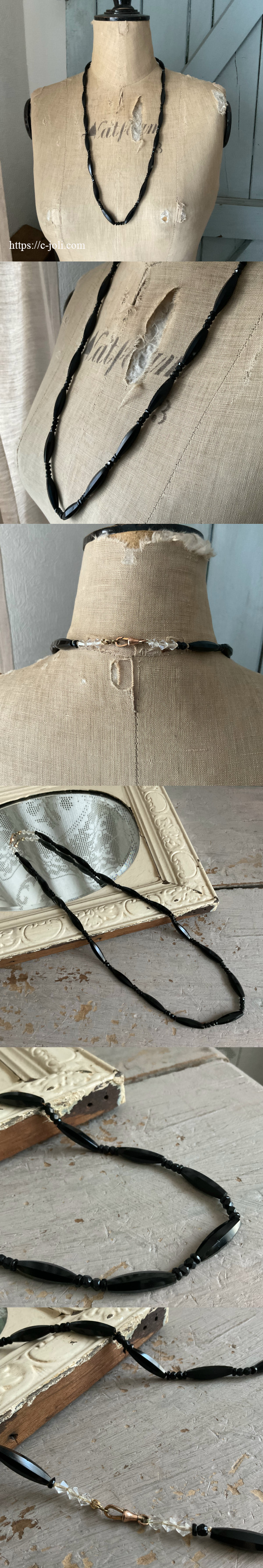 黒のカットガラスに、透明のカットガラスが用いられた、シンプルで素敵なロングネックレスです。