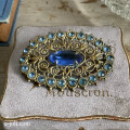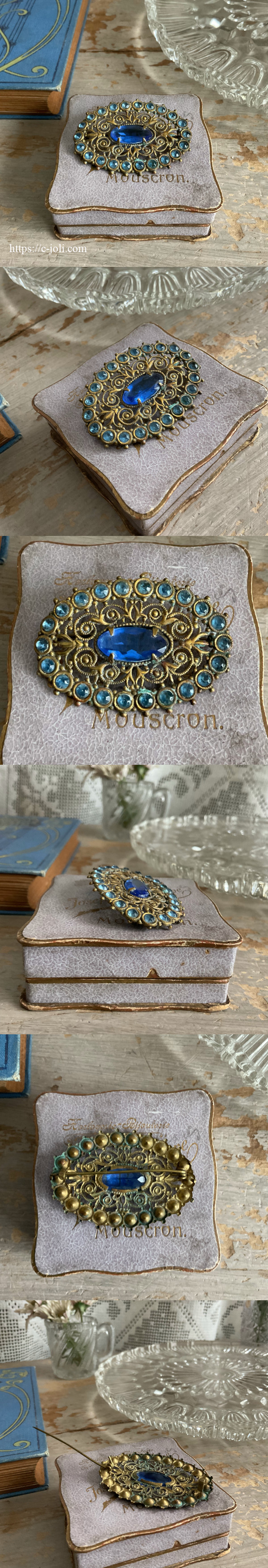 繊細なフィラグリーのベースに、カットされたガラスが素敵なアンティークブローチです♪