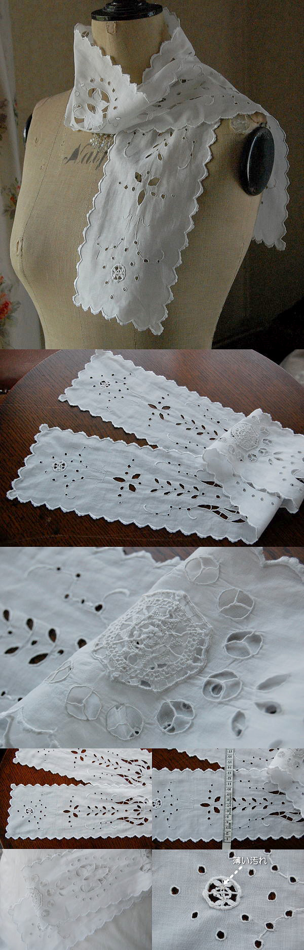 薄く繊細な綿生地に、とても丁寧なカットワーク手刺繍が素敵なコットンストールです♪ ※軽く、漂白・洗濯済みです。