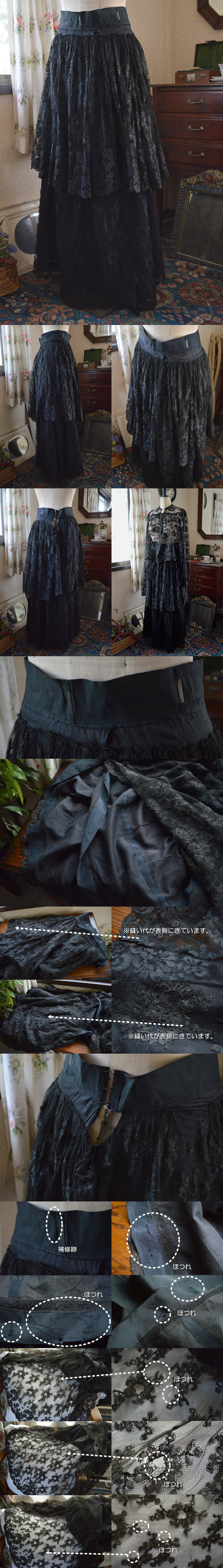 くったりとやわらかな手触りのリネンレーススカート。レースは1900年のものですが、スカートに作られたのは、近年のようです。写真のようなほつれが数箇所ありますが、あまり目立ちません。 ※手洗い済みです。