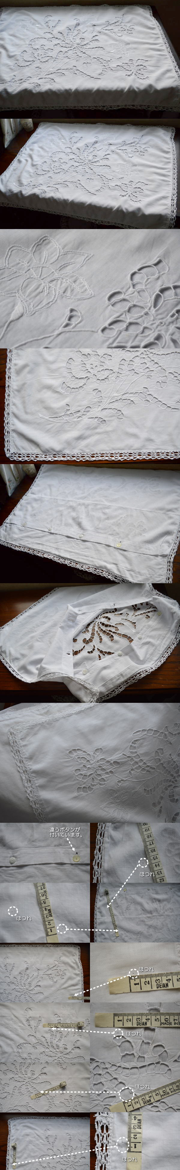 薄く繊細な綿生地に、細かく丁寧なカットワーク手刺繍が魅力のピローケースです♪ クッションケースに作り変えていただいても。 ※軽く、漂白・洗濯済みです。