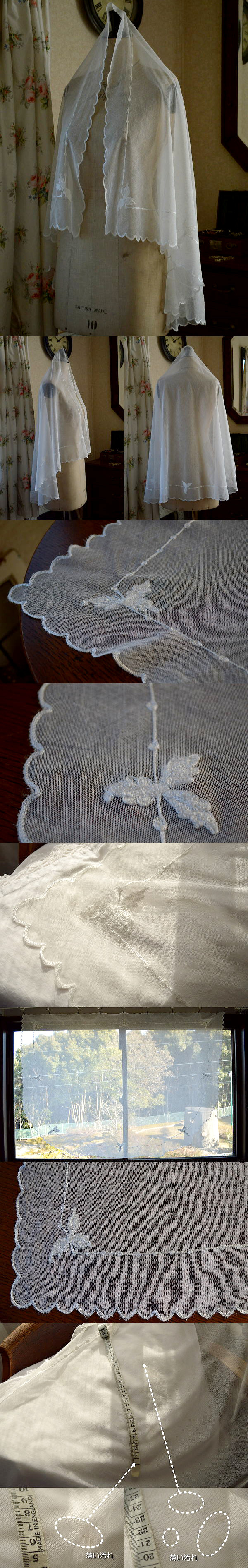 とてもやわらかく繊細なチュールレースにうっとりします♪ 細かな編み目のアンティークチュールレースです。 ※軽く、漂白・洗濯済みです。