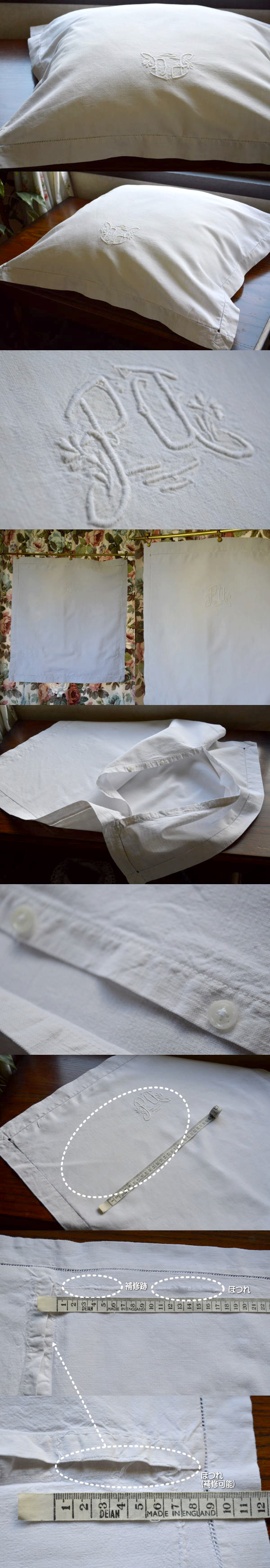 比較的しっかりとした厚みでやわらかな綿生地のクッションケースです♪ 写真のように、薄い汚れがありますが、雰囲気を損なわない程度です。 ※洗濯済みです。
