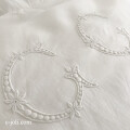 丁寧に施された手刺繍モノグラムやホワイトワーク、エッジのレースが繊細で素晴らしいです。表地は上質な薄い麻ローン地、裏地はやわらかな綿ローン地です。ピローケース(枕カバー)としてはもちろん、クッションカバーとしてもお使いいただいても♪ 写真のような薄い汚れがありますが、気にならない程度です。 ※洗濯済みです。