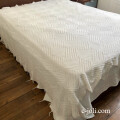 しっかりと編み込まれたクロッシェレースのベッドスプレッド。写真のような薄い汚れと小さなほつれが1箇所ありますが、全体的に良い状態です。