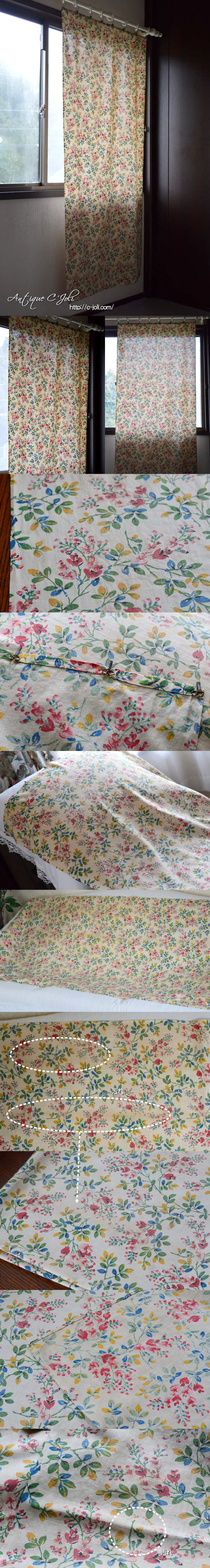時を経た風合いがとても素敵なフレンチアンティークカーテン。カーテンとしてお使いいただくのはもちろん、ファブリックとしてハンドメイドにお役立ていただいても、十分価値のあるサイズです♪ ※洗濯済みです。