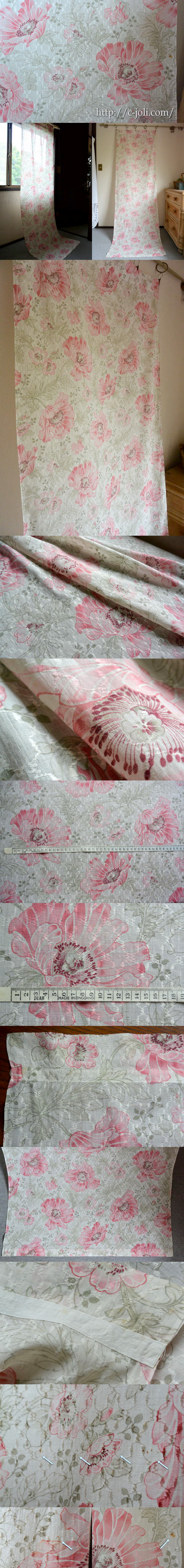 とても涼しげな、透け感のあるガーゼ素材のプリントカーテン。アネモネのデザインでしょうか。落ち着いたピンクとグリーンのデザインが素敵です♪ カーテンとしてはもちろん、ファブリックとしてリメイクしてお使いいただいても。写真のような小さな汚れがありますが、あまり目立ちません。 ※洗濯済みです。