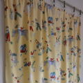 くったりとしたレーヨンのような素材のコットンカーテン。イエローのベースにチャイルド柄がとっても可愛いです♪ 写真のように裾部分に表面キズがありますが、雰囲気を損なわない程度です。 ※洗濯済みです。