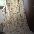 シャビーな雰囲気の花柄が素敵な、比較的の厚みのある綿生地のロングカーテン。カーテンとしてお使いいただいても、リメイクしてお使いいただいても。写真のようなカーテンリングがついています。小さなほつれや汚れがありますが、全体的にきれいな印象です。 ※洗濯済みです。