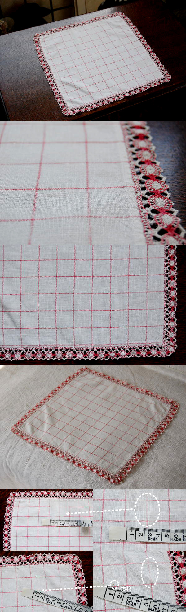 時を経て風合いを増したリネンに、エッジのフリルが可愛らしい、リネンハンカチです♪ ラインが薄くなっている箇所がありますが、雰囲気を損なわない程度です。