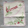 素朴な風合いの麻生地に、手刺繍がとても素敵なレターラック(状差し)。写真のようなほつれがありますが、あまり気になりません。 ※軽く、洗濯済みです。