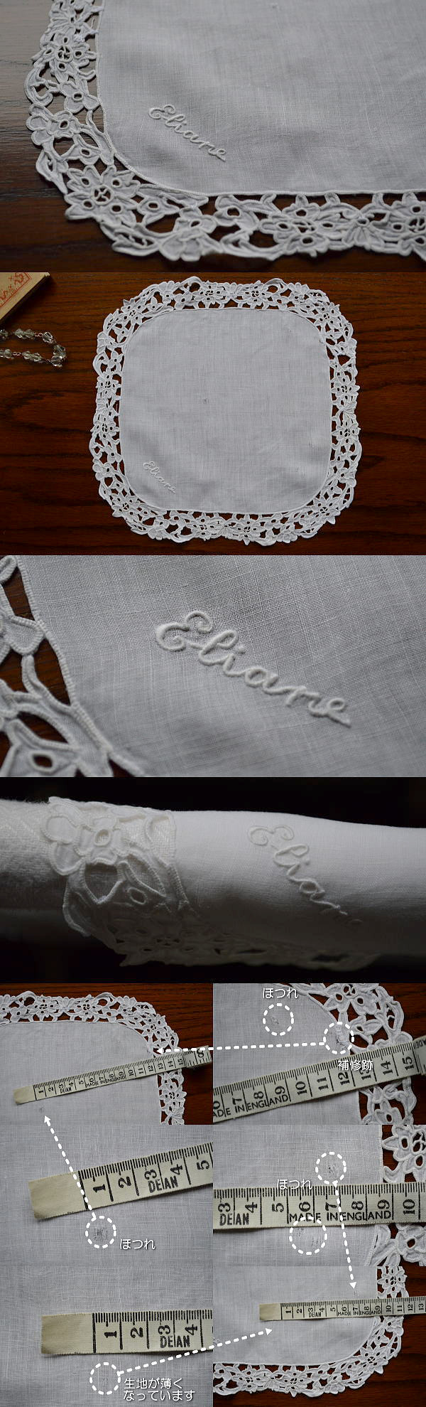 やわらかく繊細なコットン地に、丁寧な手刺繍が素敵なアンティークコットンハンカチ。飾って楽しんでいただいても、実用いただいても♪ ※軽く、漂白・洗濯済みです。