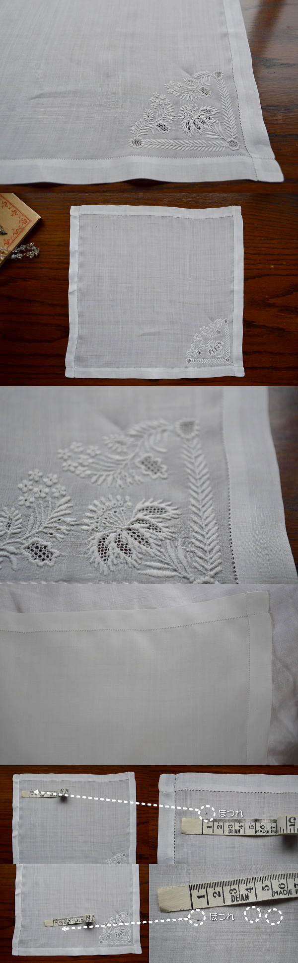 薄く繊細なコットンローン地に、とても丁寧な手刺繍が見事なアンティーク刺繍ハンカチです♪ フレームに入れて飾っていただいても、ハンドメイドにお役立ていただいても! ※洗濯済みです。