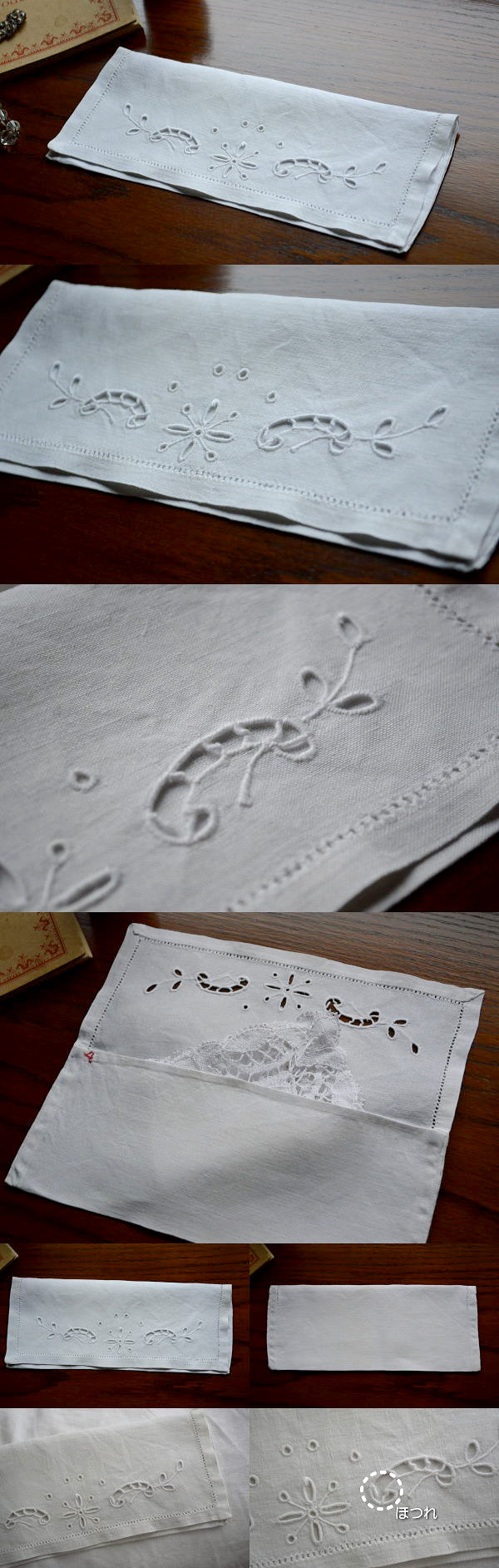 時を経て風合いを増した麻生地に、丁寧な手刺繍が素敵なアンティークリネンケースです♪ テーブルナプキンを入れるケースですが、ペンケースやアクセサリーケースにしていただいても。商品にテーブルナプキンは付属していません。 ※軽く、漂白・洗濯済みです。