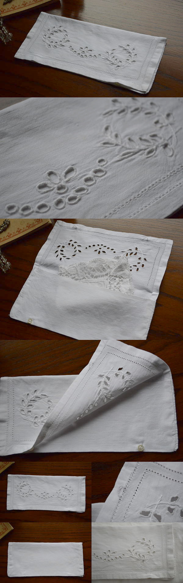 時を経て風合いを増した麻生地に、丁寧な手刺繍が素敵なアンティークリネンケースです♪ テーブルナプキンを入れるケースですが、ペンケースやアクセサリーケースにしていただいても。商品にテーブルナプキンは付属していません。 ※軽く、漂白・洗濯済みです。