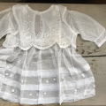 とてもやわらかく繊細なコットンチュールレースのベビードレス。飾って楽しんでいただいても、ドールやテディベアに着せて楽しんでいただいても♪ 写真のような薄い汚れや小さなほつれがありますが、全体的にきれいな印象です。 ※洗濯済みです。