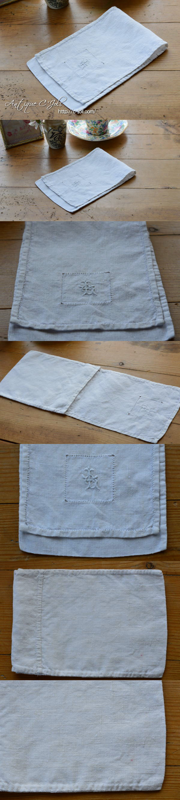 少し生成りの麻生地に、手刺繍モノグラムが可愛い、小さなリネンケースです♪ ※軽く漂白、洗濯済みです。