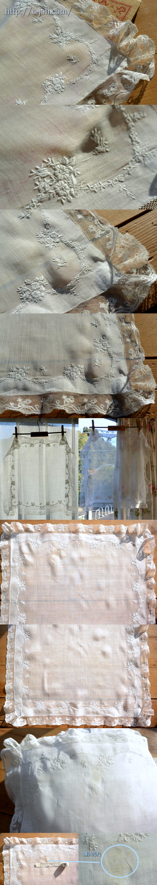 薄く繊細な麻のローン地に、細かく丁寧なホワイトワークとハンドワークレースがとても魅力的なフランスアンティークハンカチ。ウェディング(マリアージュ)や特別な日にお持ちいただいても、フレームに入れて飾っていただいても♪ ※軽く漂白、洗濯済みです。