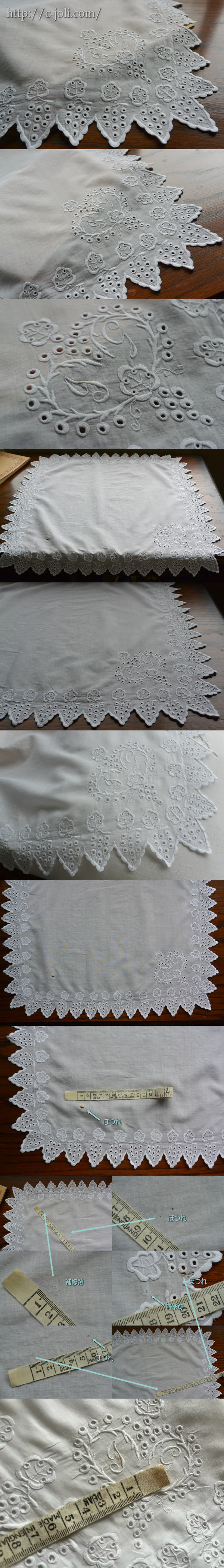 薄くやわらか綿ローン地に、とても丁寧な手刺繍が素敵なアンティークハンカチです♪ 写真のようなほつれや汚れがありますが、雰囲気を損なわない程度です。 ※軽く漂白、手洗い済みです。