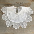繊細なチュールレースと細かなクロッシェレースが素敵なベビースタイ。実用いただいても、ドールやテディベアに着せていただいたり、飾って楽しんで頂いても♪ ※洗濯済みです。