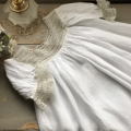 薄く上質な麻生地に、丁寧なタティングレースが素晴らしい! 実用はもちろん、ドールやテディベアに着せていただいたり、お部屋に飾ったり。。。とても可愛らしいアンティークベビードレスです♪ 写真のように、後ろ下部分に薄い汚れがありますが、あまり目立ちません。お洗濯で落としていただけるかもしれません。 ※洗濯済みです。
