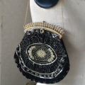 フィラグリーの真鍮の口金、ベルベットのベースに金の刺繍が豪華な雰囲気のアンティークバッグです♪ バッグを開ける時は口金の中央の丸部分を押して開けてください。