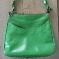 グリーンカラーがいかにも70年代の雰囲気を持つヴィンテージバッグ。長さは二通りにできます。合皮製。