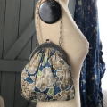 エンボスのデザインが素敵な口金に、落ち着いたデザインのファブリックが魅力のアンティークバッグです♪ 布部分はオリジナルではないようです。比較的薄い生地ですので、あまり重いものを入れてお使いにならないことをお勧めします。