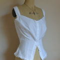 細かく美しい手刺繍と、丁寧な手縫いが素晴らしい。インナーとして着ていただいても、重ね着しても、ディスプレイ用にしていただいても素敵なアンティークキャミソールです♪ ウェストがかなり細身です。 ※軽く漂白、洗濯済みです。