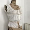 細かく美しい手刺繍や繊細なレースがとても素晴らしい!インナーとして着ていただいても、重ね着しても、ディスプレイ用にしていただいても素敵なアンティークキャミソールです♪ 写真のように肩に薄い汚れとシルクリボンがなくなっている箇所がありますが、全体的にとても良い状態です。 ※洗濯済みです。