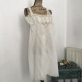 細かく美しい手刺繍や繊細なレースがとても素晴らしい!薄く繊細な綿ローン地のフランスアンティークキャミワンピースです♪ 写真のようにストラップの付け根一箇所と後ろ側にほつれがありますので、実用なさる場合は補修してお使いください。 ※洗濯済みです。