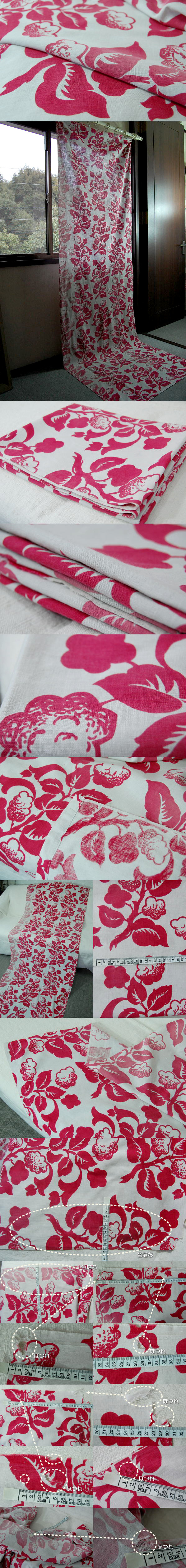 少し色褪せたワインカラーが素敵なフレンチファブリック。エッジはかなり色落ちしていますが、これはこれで、素敵な雰囲気です! いろいろお使いいただきたい貴重なアンティーク布です♪ ※軽く、洗濯済みです。