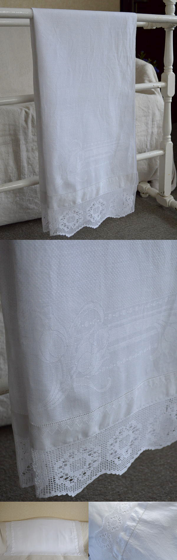 吸水性の良い麻生地にコットンクロッシェレースがとても素敵なリネンタオルです♪ 少し薄めですがしっかりとしたリネンです。 ※軽く、漂白・洗濯済みです。