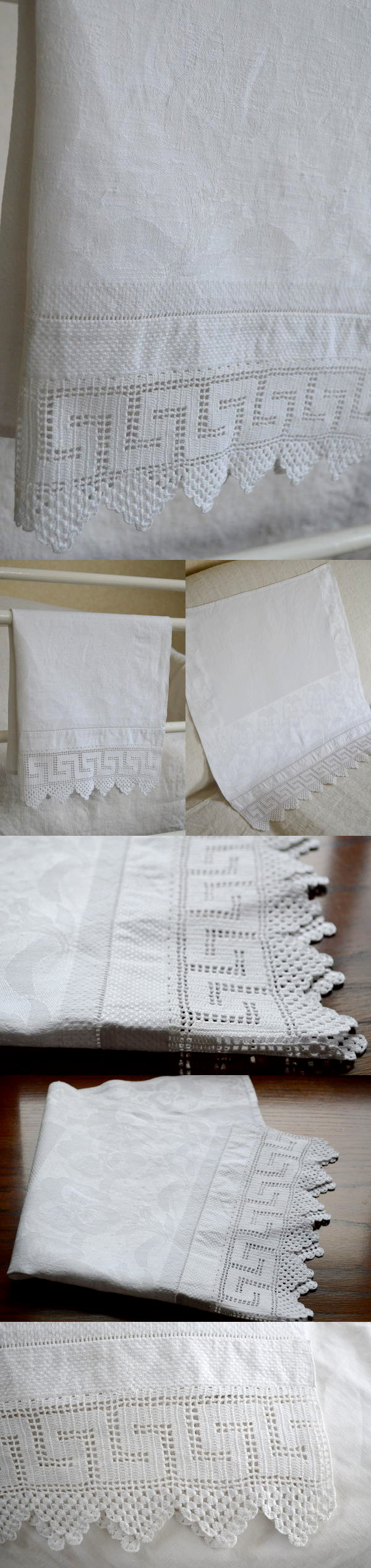 何枚も欲しくなるイギリスアンティークゲストタオル。しっかりとした厚みの麻生地に、クロシェレースが素敵です♪ 目隠しカーテンとしてお使いいただいても! ※軽く、漂白・洗濯済みです。