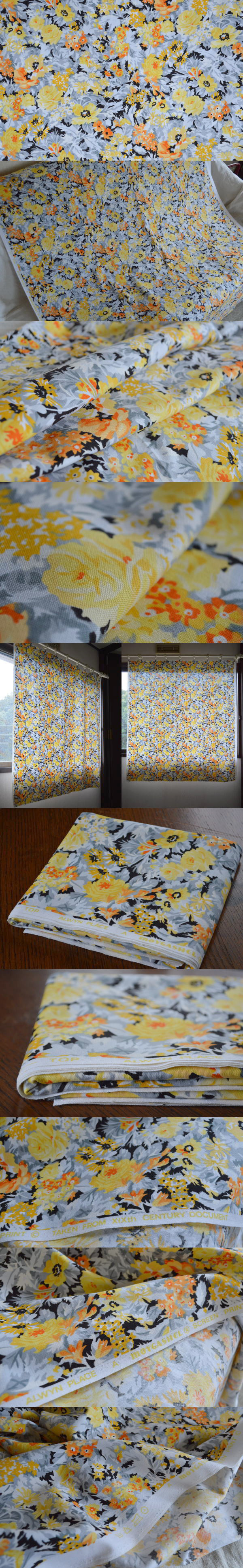 19世紀のデザインをモチーフにコピーされたコットンファブリック。イエローとグレーで、個性的な色合いです♪ 薄すぎず、分厚くもない厚みの綿生地です。 ※デッドストック品(未使用品)です。