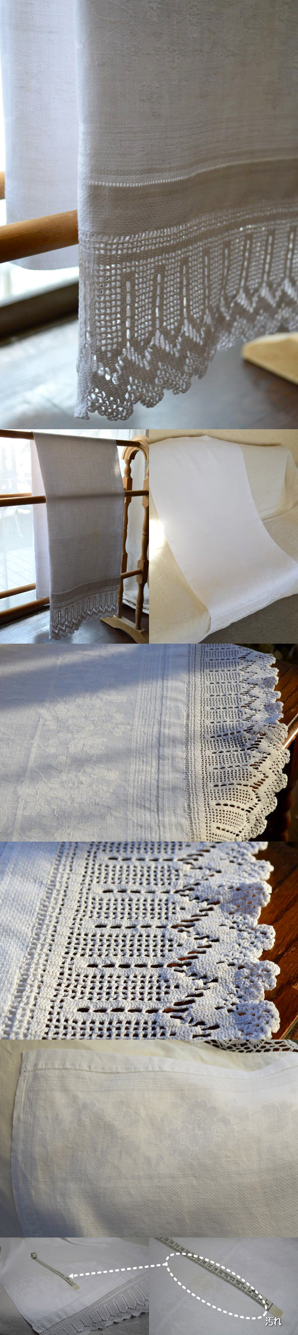 ハンドタオルとしてはもちろん、テーブルクロスとしてお使いいただいたり、小窓のカーテンとしてお使いいただいたり、といろいろ楽しんで頂けるアンティークゲストタオルです♪ 写真のように黄色い汚れがありますが、タオルとしてご使用時は、気にせずお使いいただけるかと思います。 ※軽く、漂白・洗濯済みです。