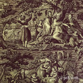 一目で惹きつけられたとても古いアンティークトワルドジュイ。、珍しい落ち着いたパープル色の繊細なデザインがたまらなく魅力的です! ※洗濯済みです。