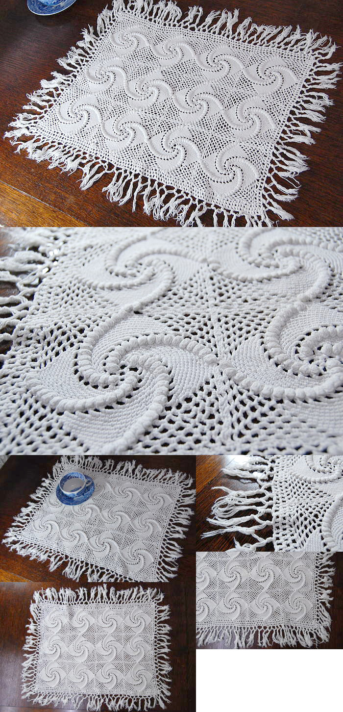 ざっくりとしたレース編みが素朴な雰囲気で素敵ですネ! レースマットとしても、カバーリングとしてもお使いいただけます♪