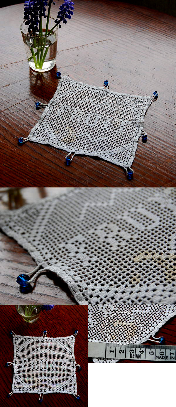 古いコットンレースにガラスビーズが素敵です♪ 写真のように薄いシミがありとてもよい雰囲気です!