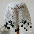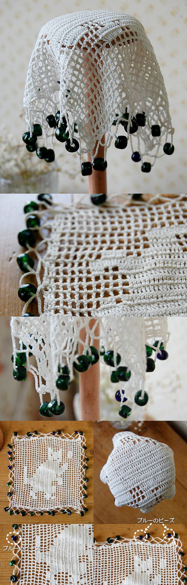 古いコットンレースにガラスビーズが素敵です♪ ダークグリーンとダークブルーのガラスビーズ。(ほとんどグリーンのビーズですが、所々ブルーのビーズです。)