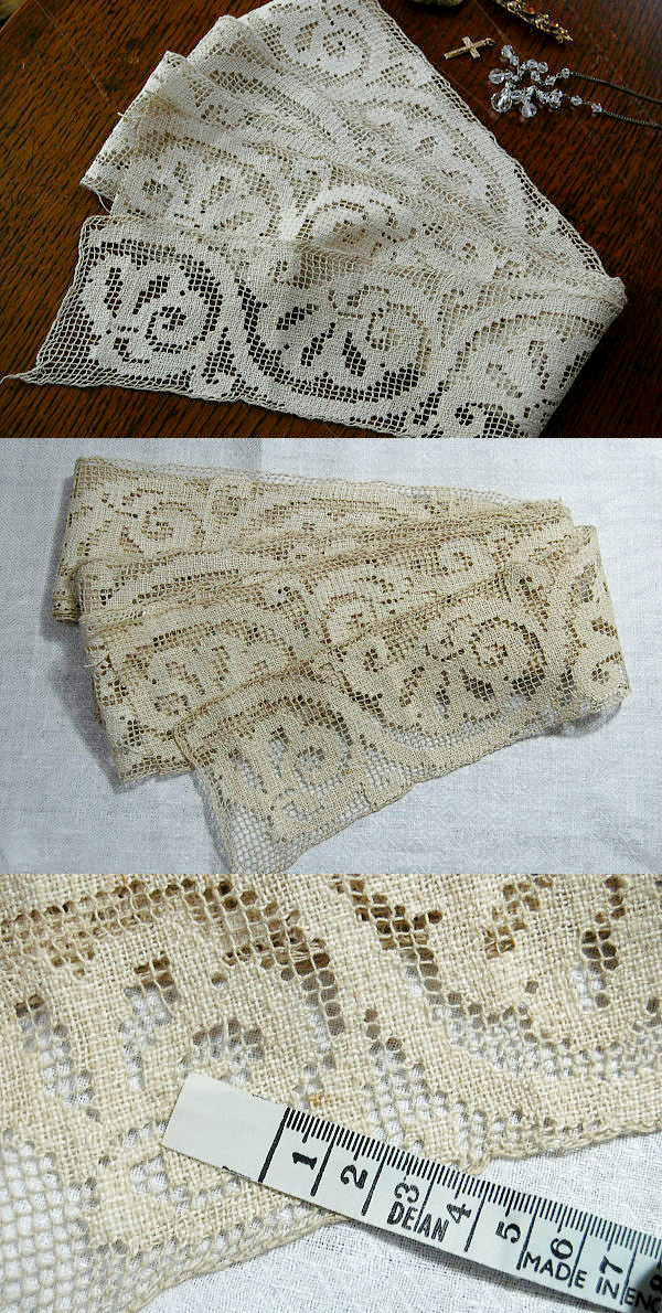 とても雰囲気のある、手作業で作られたアンティークのリネンフィレレース。幅広タイプです!