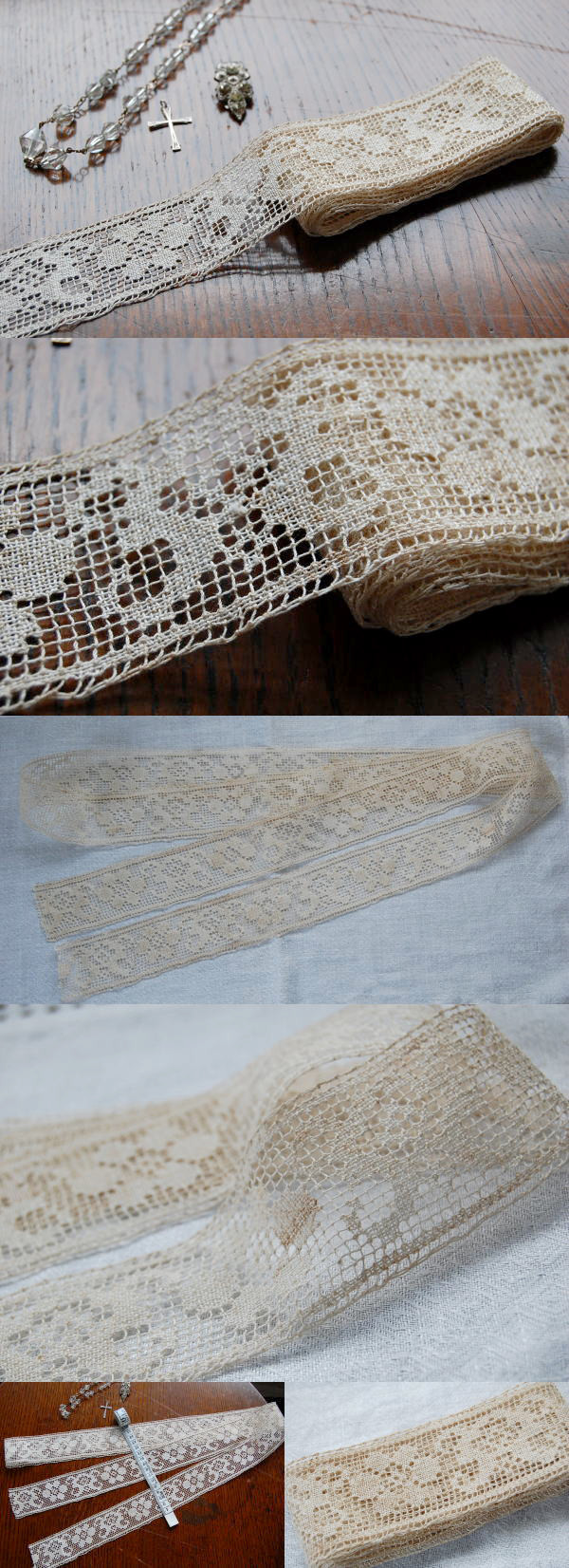 丁寧に編みこまれたアンティークフィレレース。フレームに入れて飾っていただいたり、ハンドメイドに役立てていただいても♪ 古びたとても素敵な風合いのアンティークレースです。