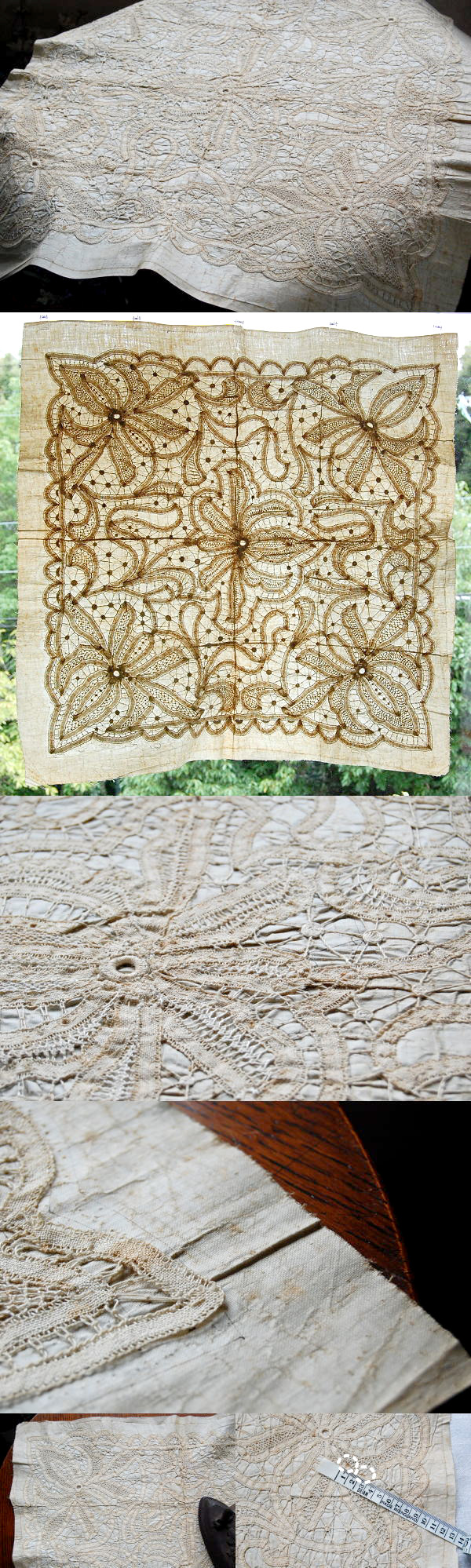フランス 20世紀初頭頃 台紙のサイズ60x60cm レースのサイズ54x54cm