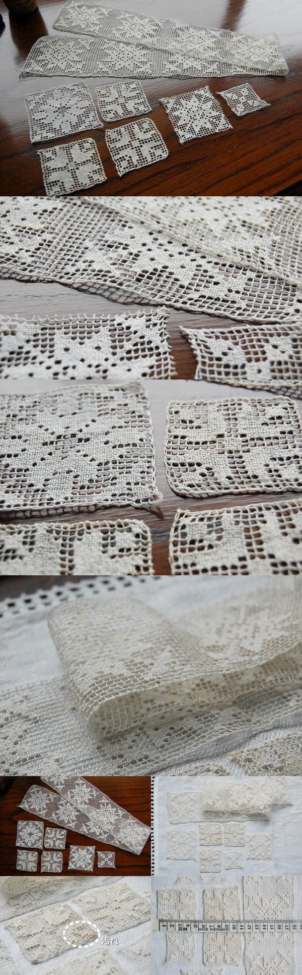 ハンドワークのリネンフィレレース。フレームに入れて楽しんでいただいても、ハンドメイドにお役立ていただいても。。。いろいろ楽しいレースモチーフ&テープレースです♪ リネンレース