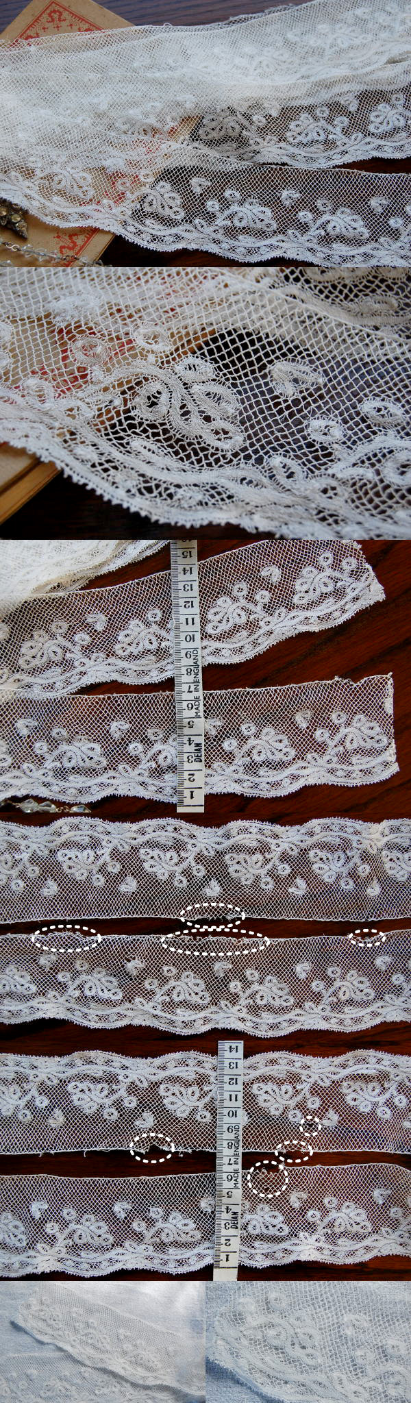 ハンドメイドに使ったり、リボンとして使ったり、フレームに入れて飾ったり・・・。いろいろ楽しめるフレンチアンティークレースです♪ 写真のようなほつれがありますが、ご使用に支障ない程度です。 ※軽く、漂白・洗濯済みです。