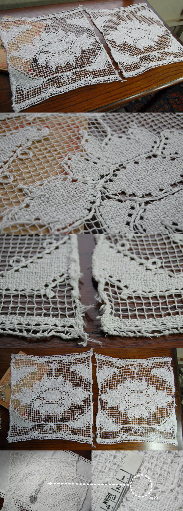 大雑把に、素朴な風合いに仕上げられた、手作業のアンティークフィレレース。くったりとしたリネンがとてもいい雰囲気です♪ ※軽く、漂白・洗濯済みです。